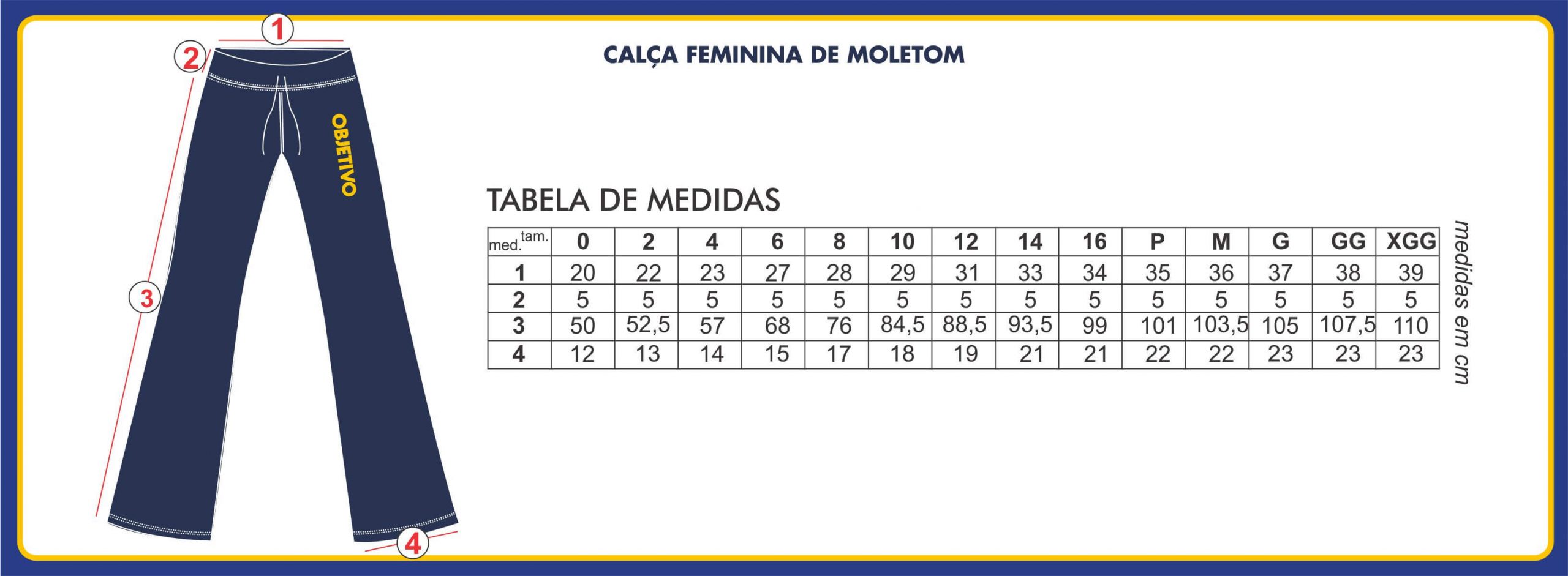 | Medidas base | 0, 2, 4, 6, 8, 10, 12, 14, 16, P, M, G, GG, XGG, X3G, X4G, X5G |