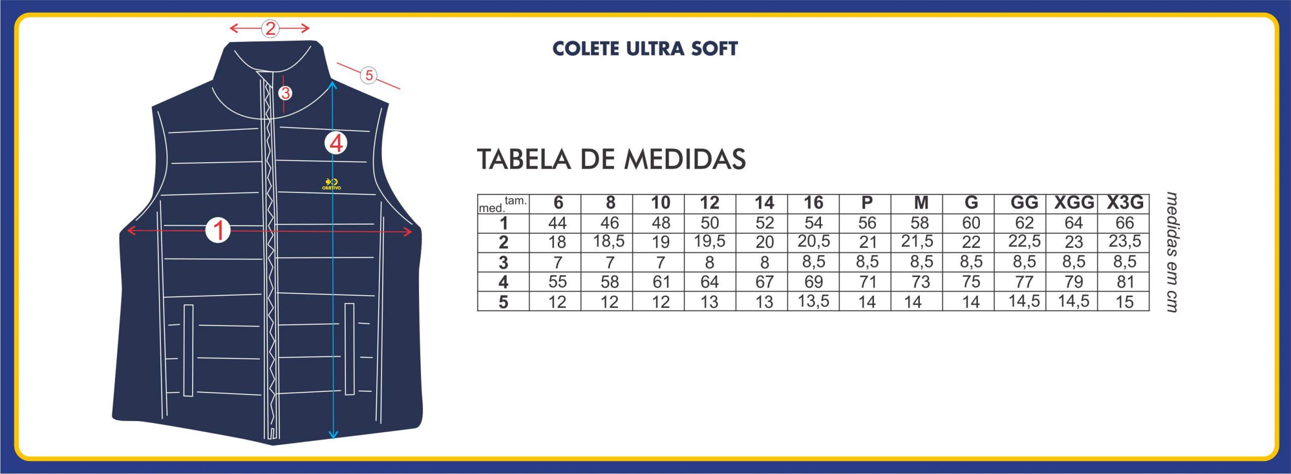 | Medidas base | 0, 2, 4, 6, 8, 10, 12, 14, 16, P, M, G, GG, XGG, X3G |